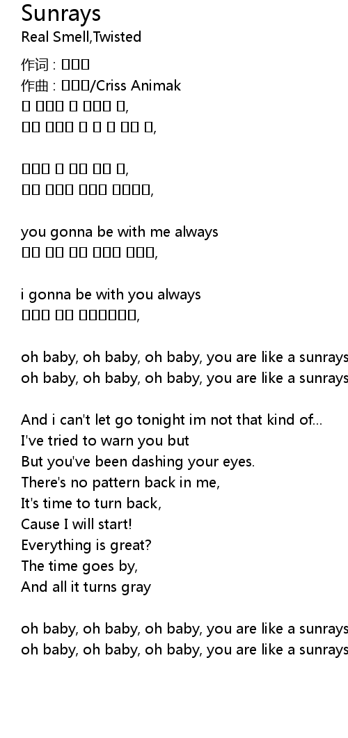 | oh baby, oh baby, oh baby, you are like a sunrays | |
