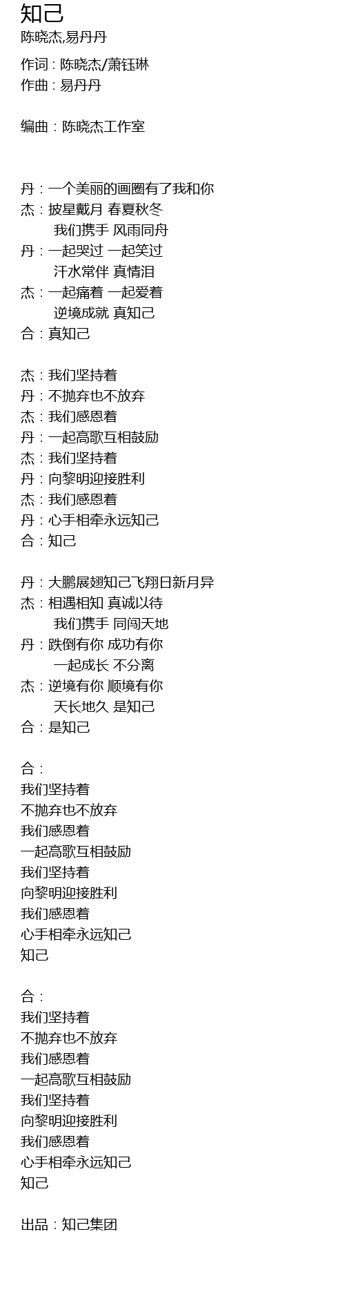 | 作词 : 陈晓杰/萧钰琳 | |
