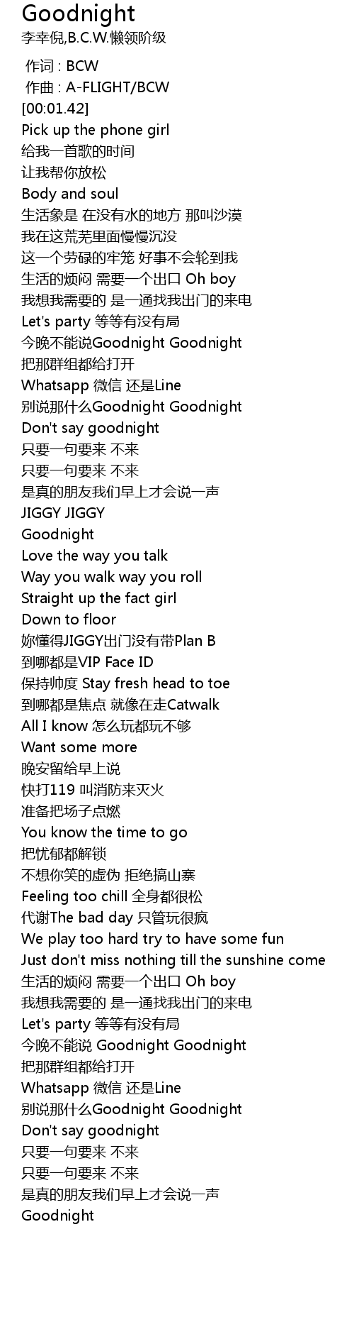 | [03:09.31] | 别说那什么Goodnight Goodnight |