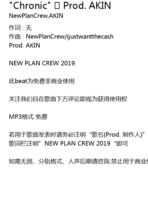 | ruo yong yu ge qu fa biao shi qing wu bi zhu ming" ge ming Prod. zhi zuo ren" ge ci lan zhu ming" NEW PLAN CREW 2019" ji ke | |
