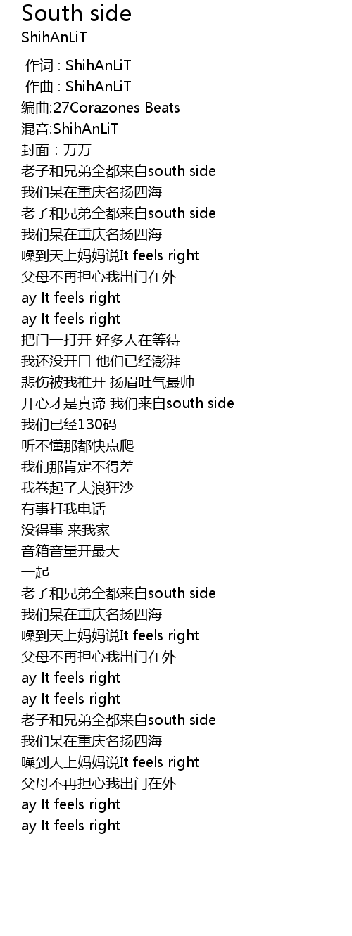 | [00:24.425] | 老子和兄弟全都来自south side |