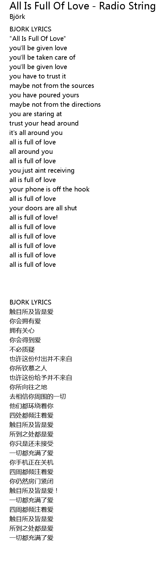 | [00:09.530] | "All Is Full Of Love" |