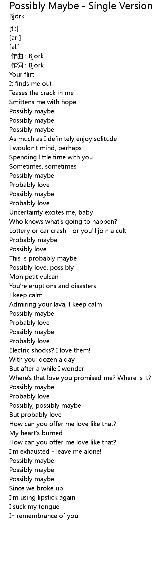 | [01:18.12] | I wouldn' t mind, perhaps |