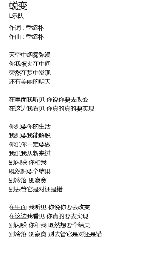 | zai li mian wo ting jian ni shuo ni yao qu gai bian | |