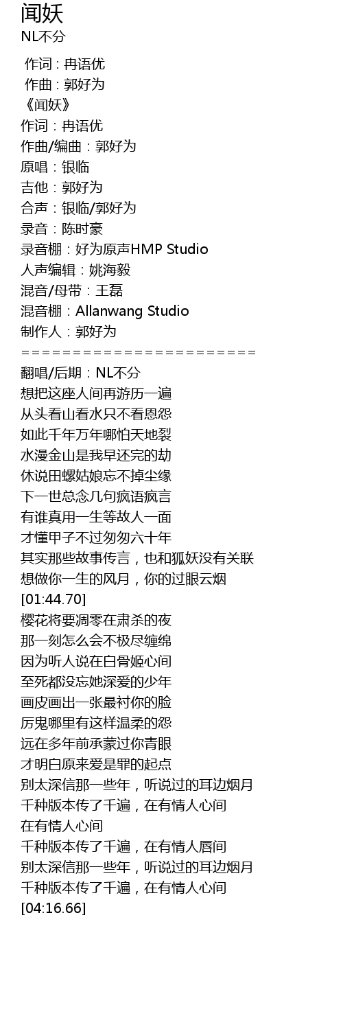 | [00:00.82] | 《闻妖》 |
