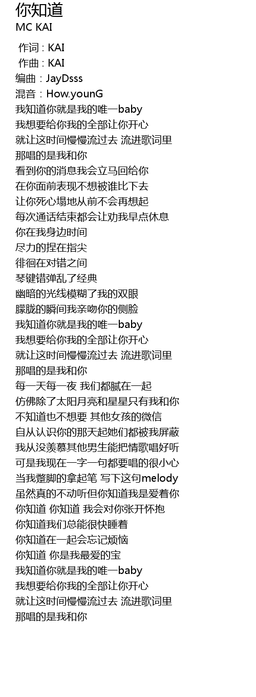 | [00:00.000] | 作词 : KAI |