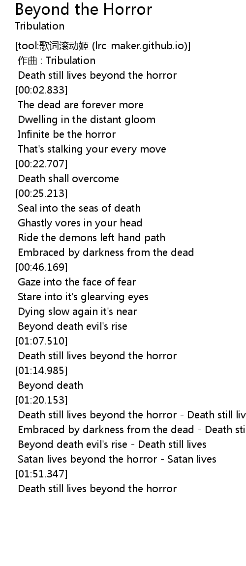 | [01:39.488] | Death still lives beyond the horror Death still lives |