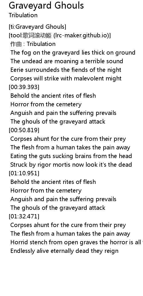 | [00:20.670] | The fog on the graveyard lies thick on ground |