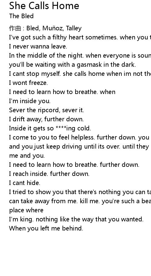 | I come to you to feel helpless. further down. you know it's hard to free myself and you just keep driving until its over. until they swallow every last drop of me and you. | |