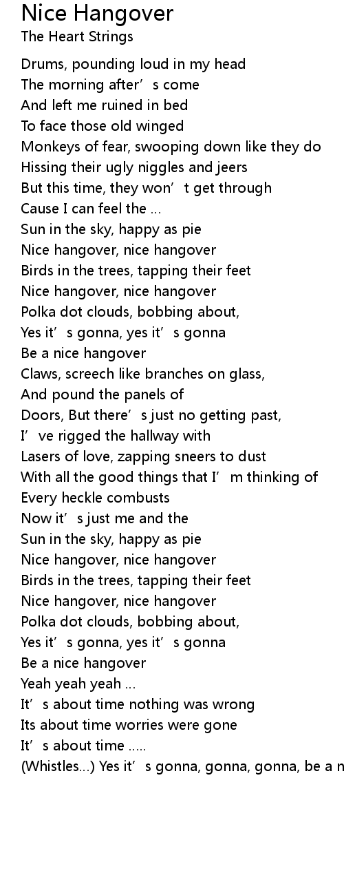 | Whistles Yes it' s gonna, gonna, gonna, be a nice hangover. |