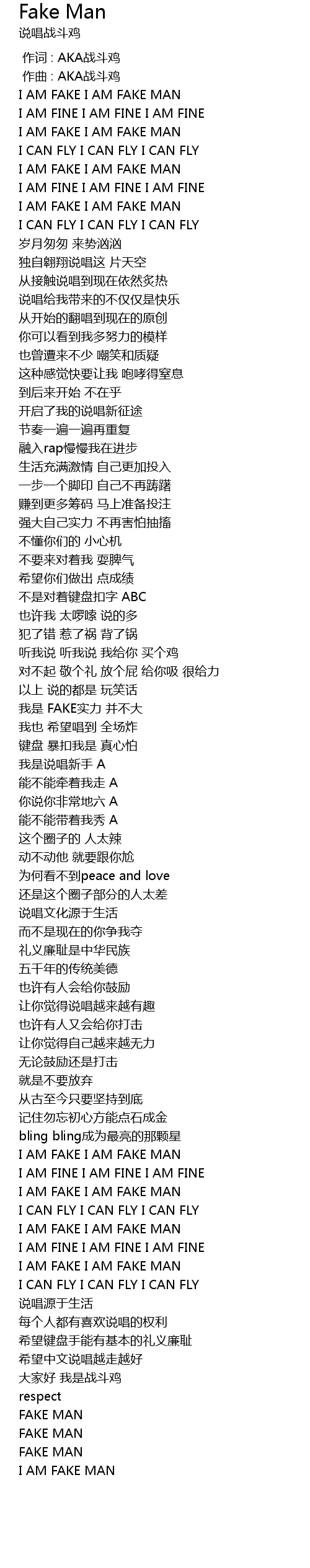 | [00:18.09] | I AM FAKE I AM FAKE MAN |