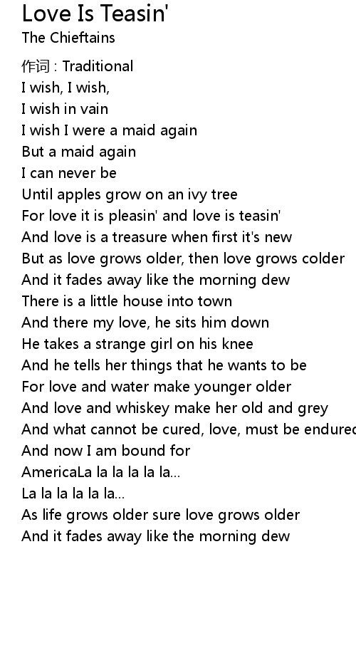 | For love it is pleasin' and love is teasin' | |
