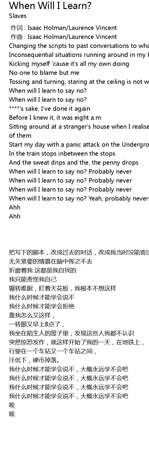 | [02:14.69] | When will I learn to say no? Probably never |