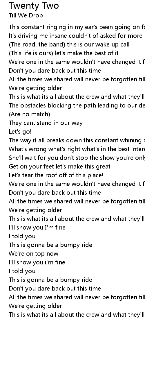 She'll wait for you don't stop the show you're only 22 |