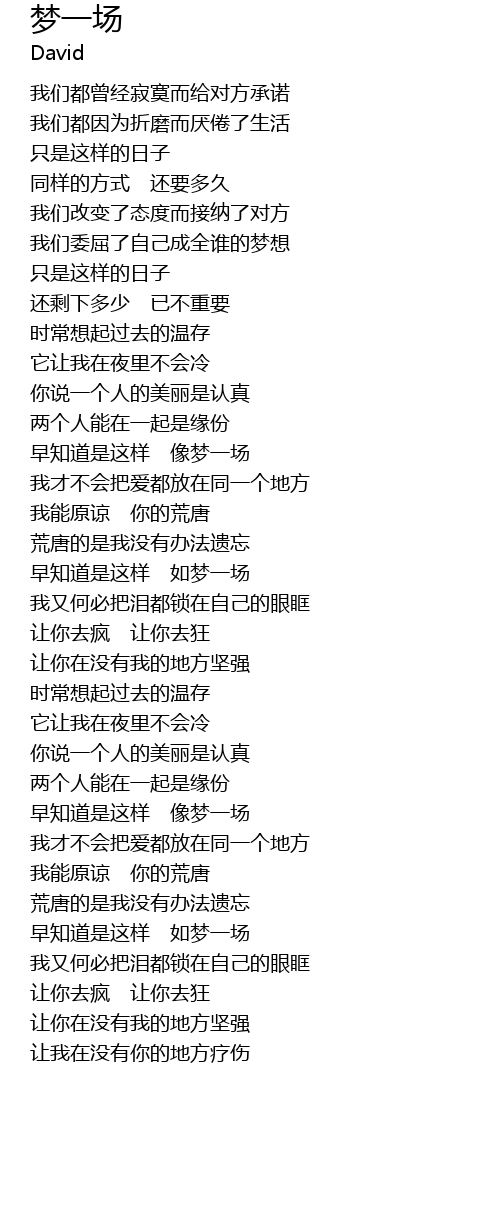 | [02:55.681] | 早知道是这样 如梦一场 |