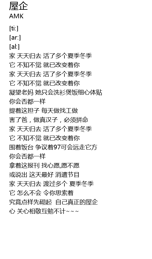 | [03:24.75] | 心 关心相敬互勉不计~~~ |