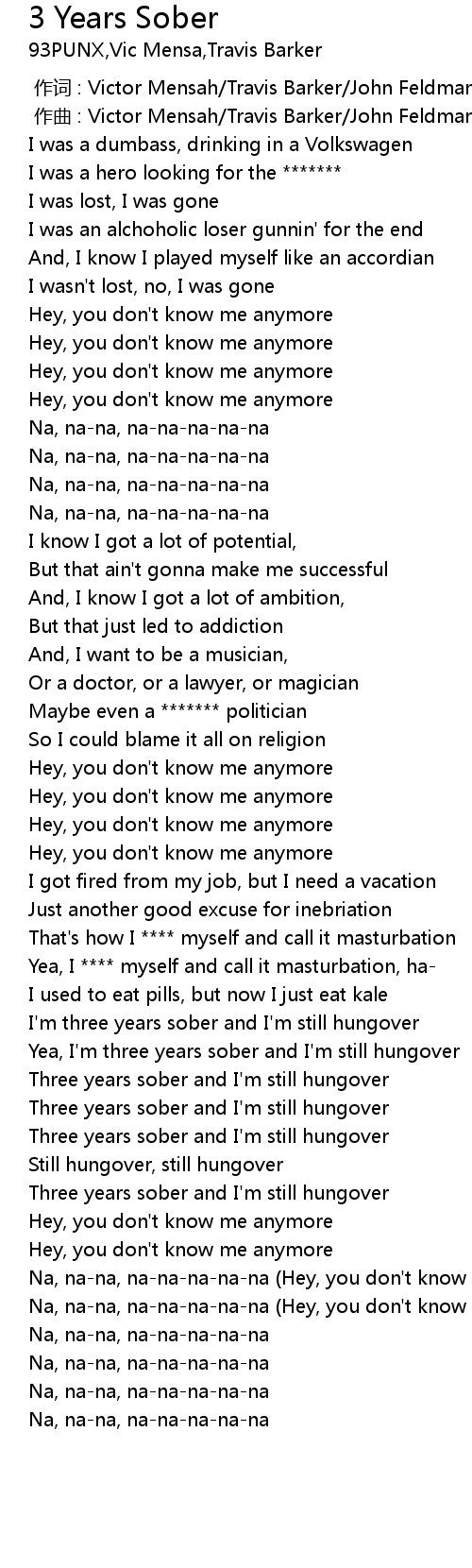 | [02:06.69] | I'm three years sober and I'm still hungover |