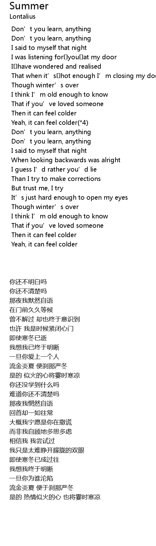 | [00:59.25] | That when it' s hot enough I' m closing my door |