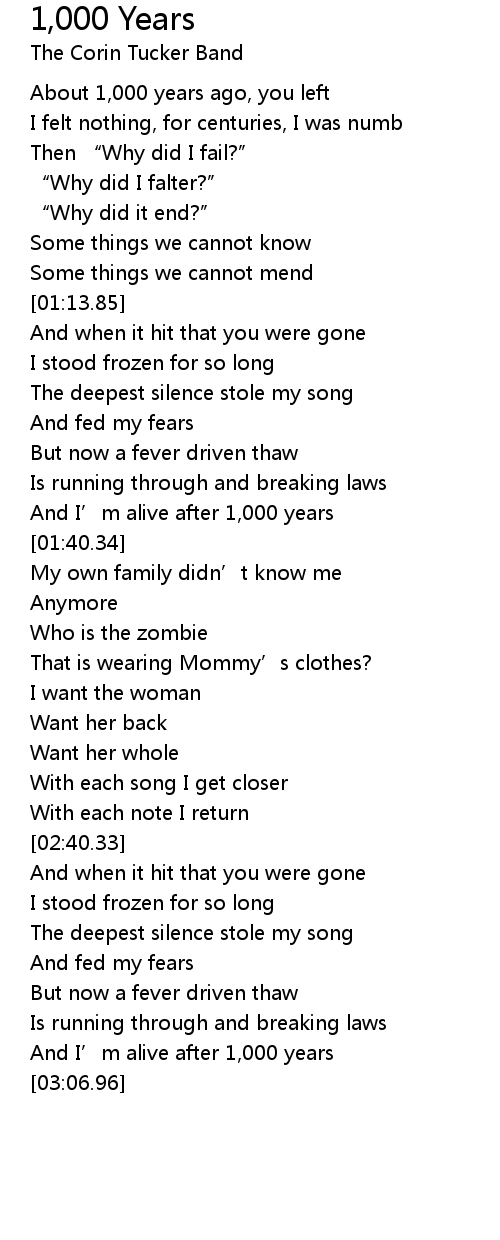 | [03:00.40] | And I' m alive after 1, 000 years |