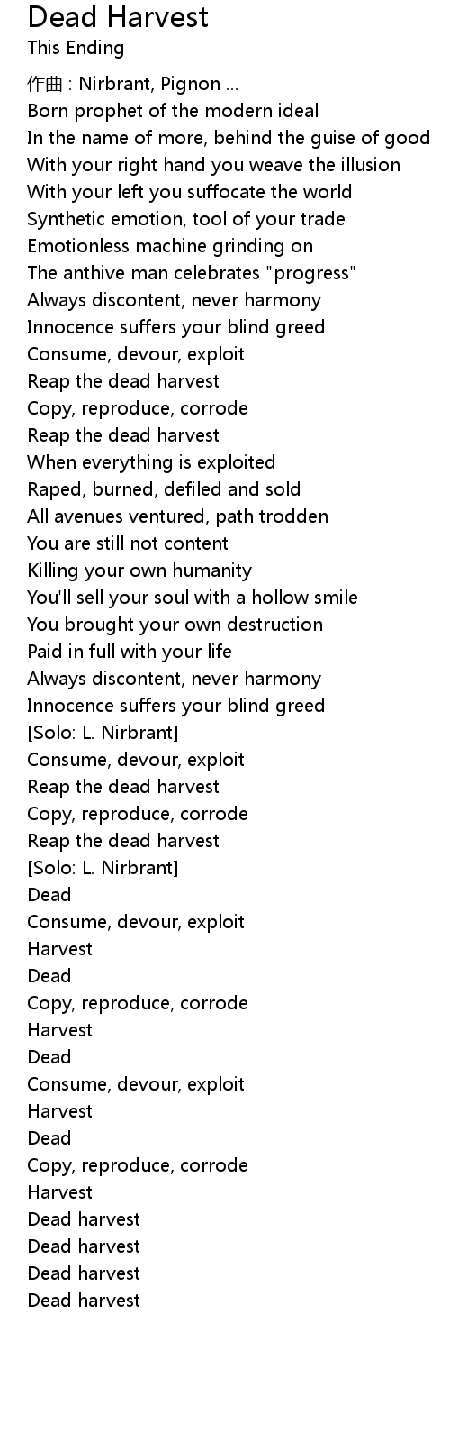 | Reap the dead harvest | |
