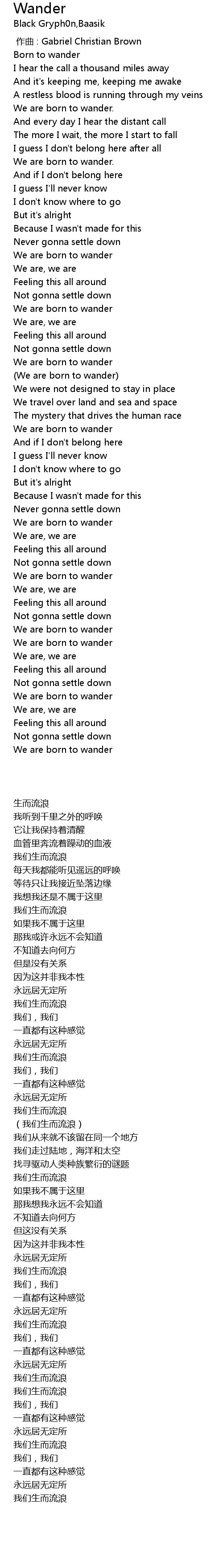 | [00:00.00] | zuo qu : Gabriel Christian Brown |