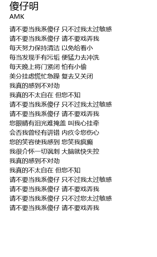 | [01:43.540] | 请不要当我系傻仔 请不要戏弄我 |