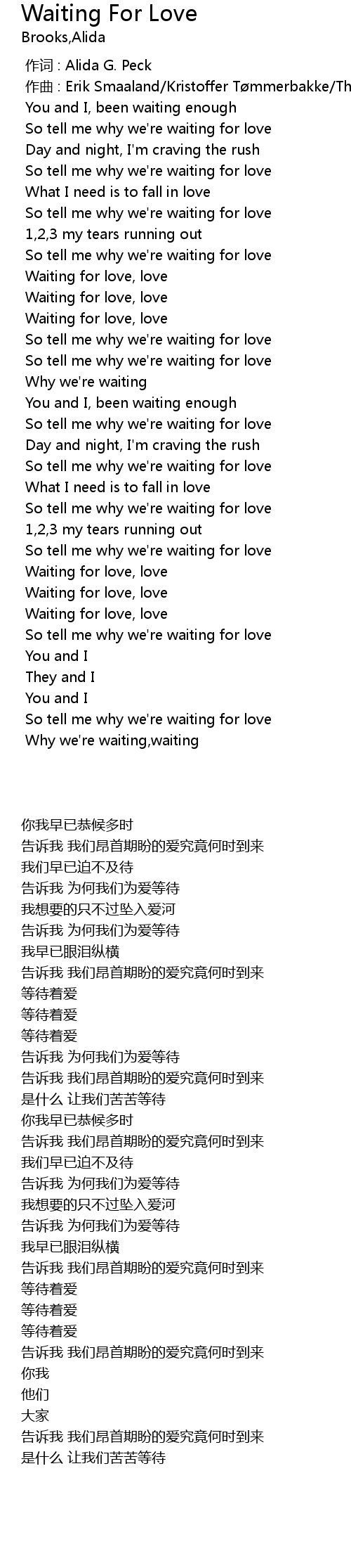 | [01:15.306] | So tell me why we' re waiting for love |