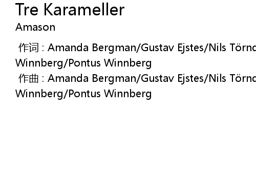 | [00:00.00-1] | zuo qu : Amanda Bergman Gustav Ejstes Nils T rnqvist Petter Winnberg Pontus Winnberg |