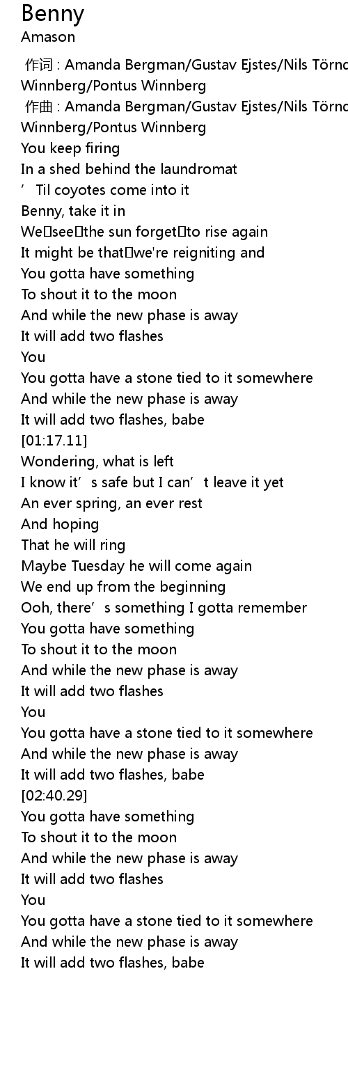 | [00:30.62] | Benny, take it in |