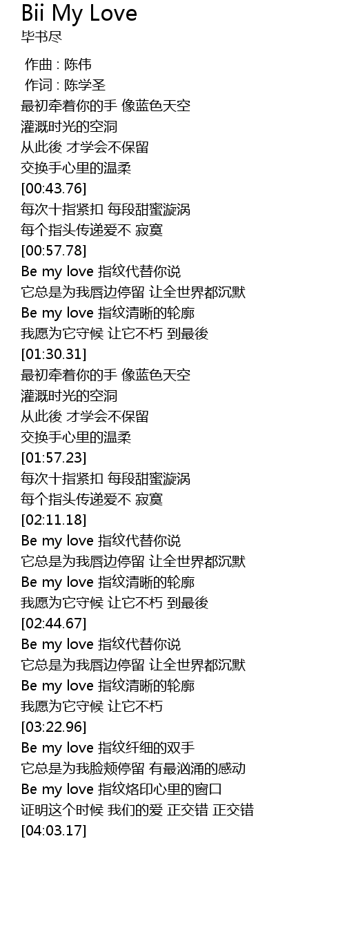 | [03:23.33] | Be my love 指纹纤细的双手 |