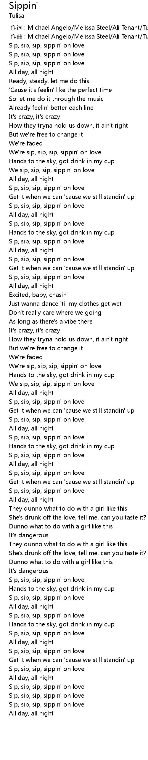 | [02:46.29] | Sip, sip, sip, sippin' on love |