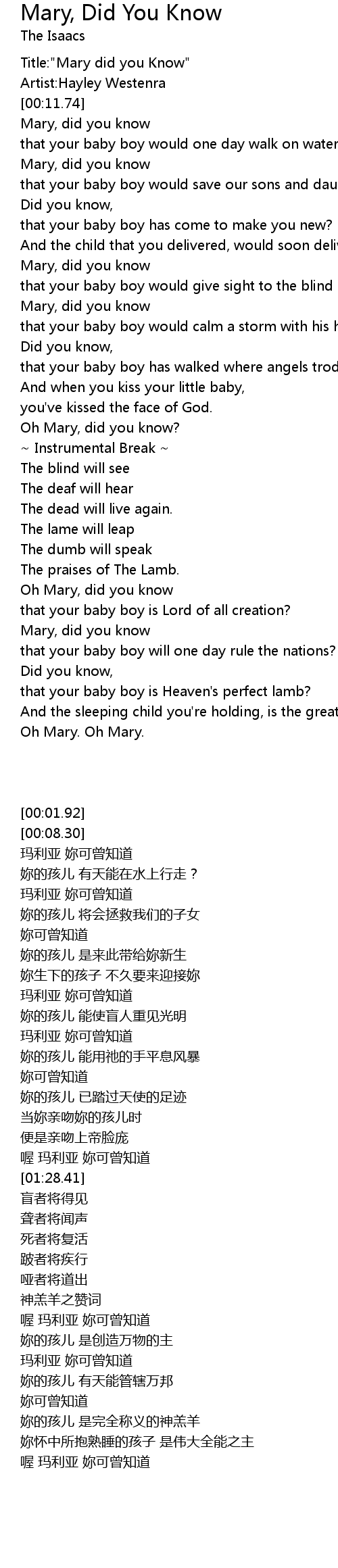 [00:01.92] Title:"Mary did you Know"