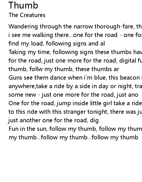 Taking my time, following signs these thumbs have klights of their own, one more for the road, just one more for the road, digital fun in the sun follow my thumb, follw my thumb, these thumbs ar |