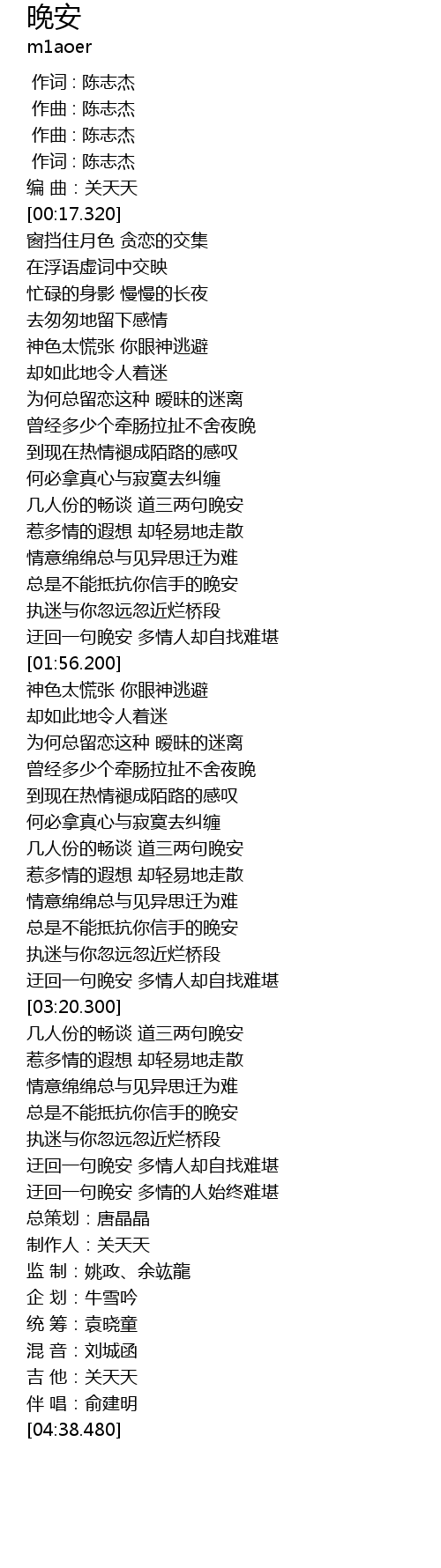 | [01:41.150] | 迂回一句晚安 多情人却自找难堪 |