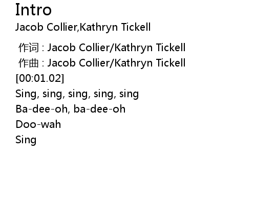 | [00:00.00] | 作词 : Jacob Collier/Kathryn Tickell |