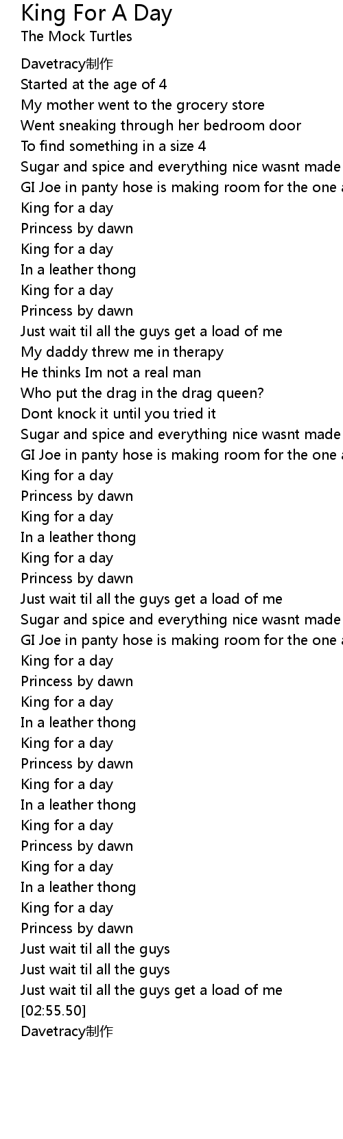 | [00:26.50] | GI Joe in panty hose is making room for the one and only |