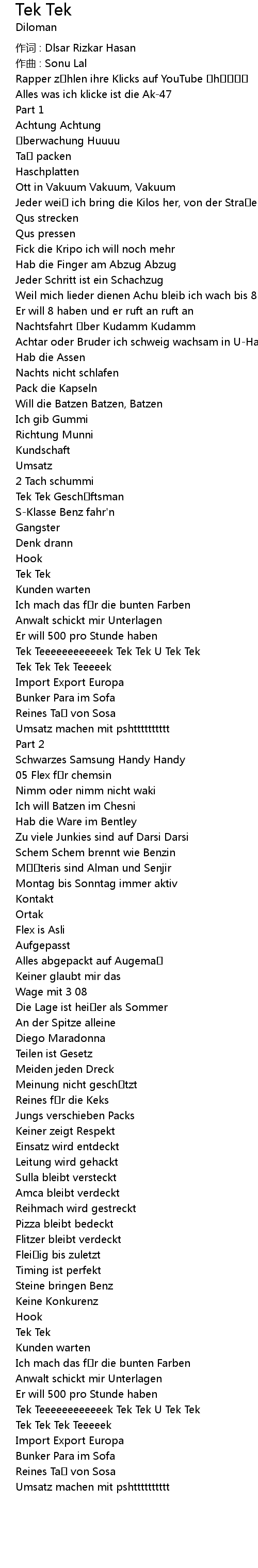 | Tek Tek Gesch ftsman | |