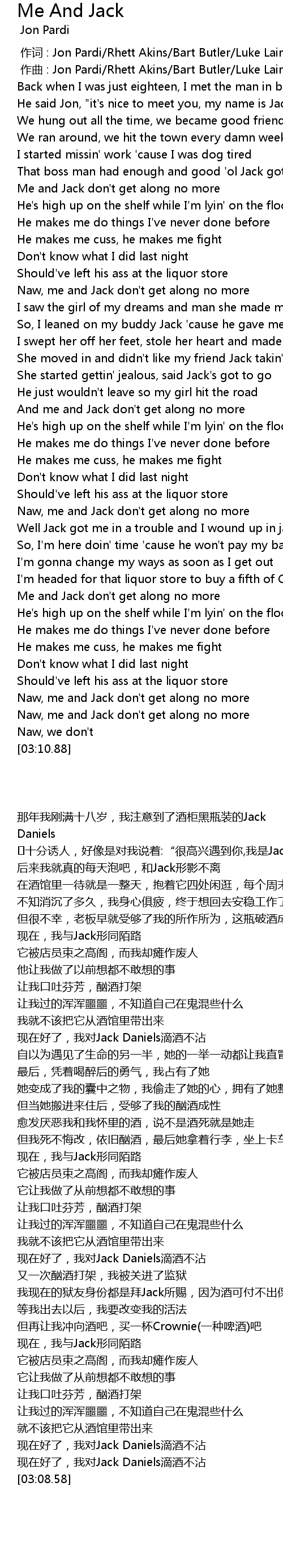 | [03:03.53] | Naw, me and Jack don't get along no more |