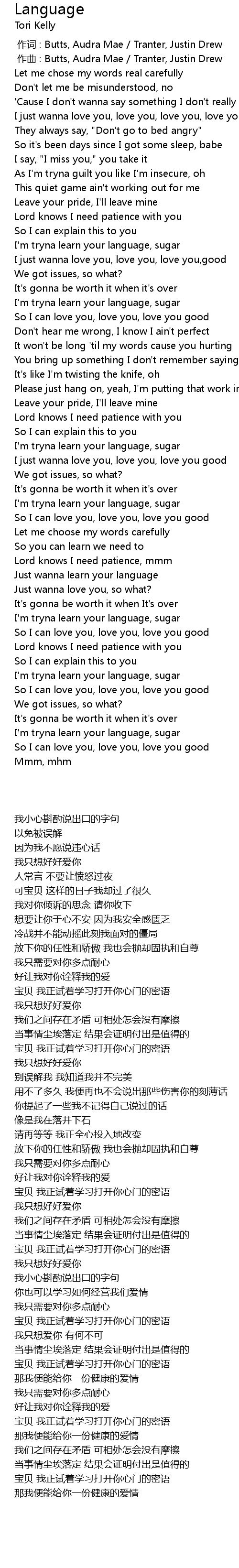 | [01:35.25] | I'm tryna learn your language, sugar |