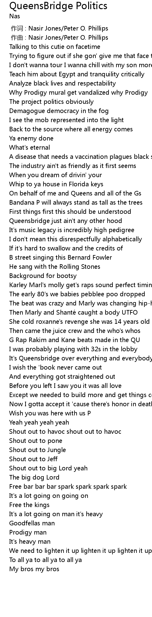 | [00:00.00] | 作词 : Nasir Jones/Peter O. Phillips |