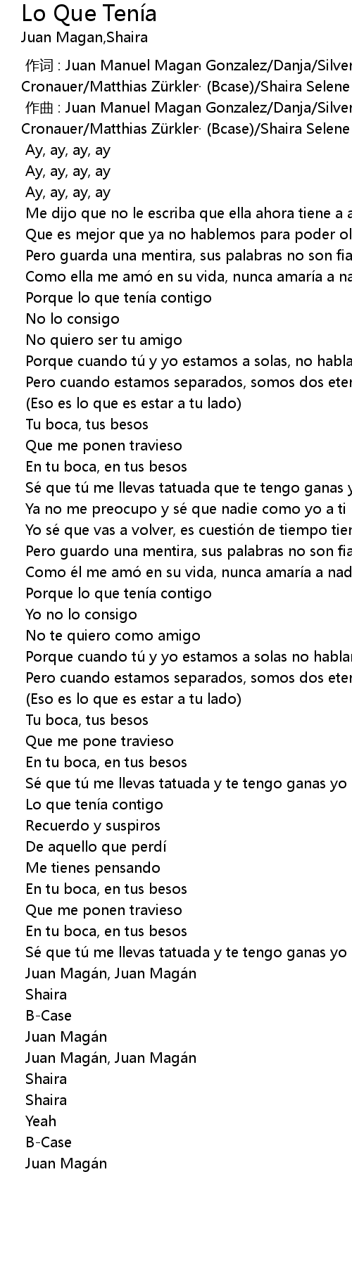 | [02:19.42] | Se que tu me llevas tatuada y te tengo ganas yo |