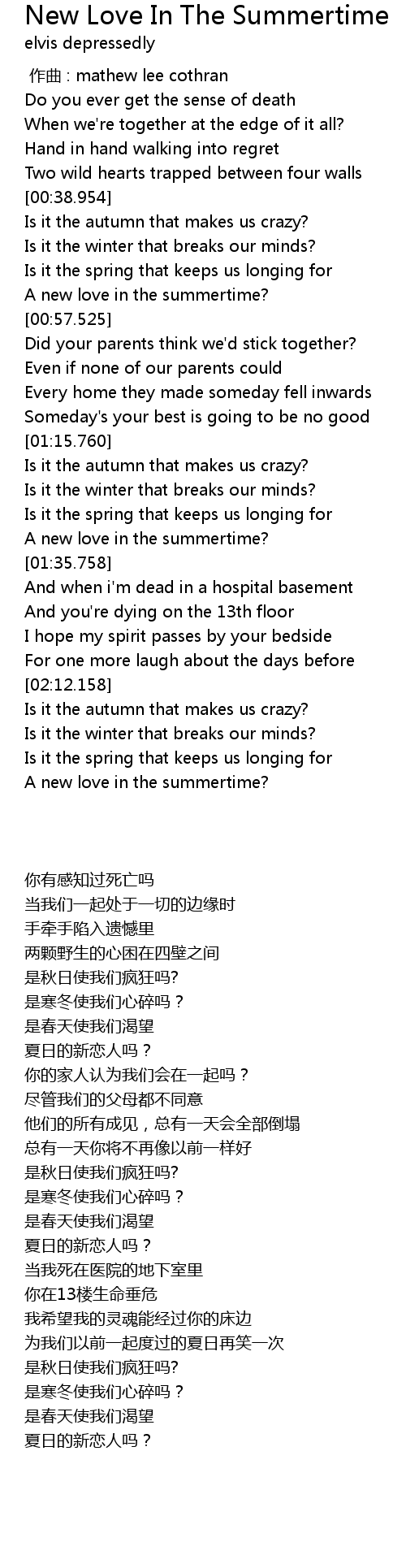 | [02:27.597] | A new love in the summertime? |