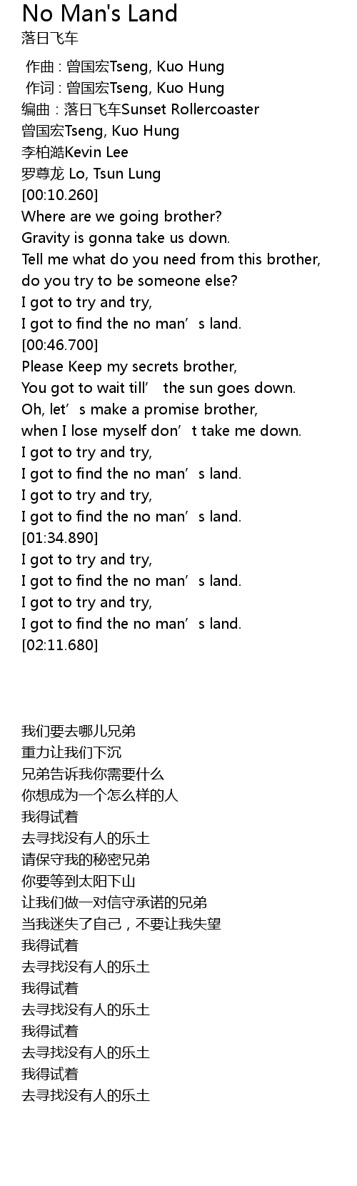 | [00:40.180] | I got to find the no man' s land. |