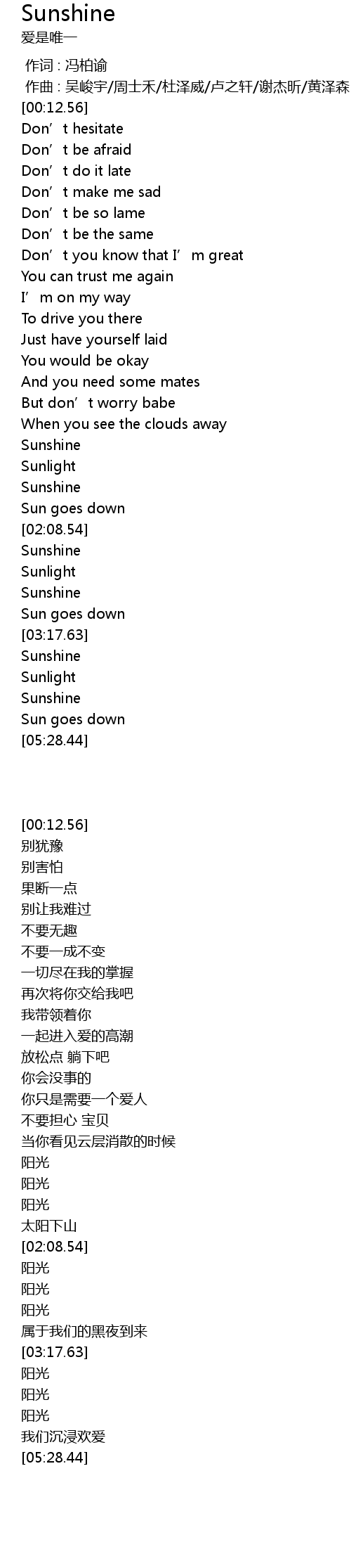 | [00:01.00] | zuo qu : wu jun yu zhou shi he du ze wei lu zhi xuan xie jie xin huang ze sen |