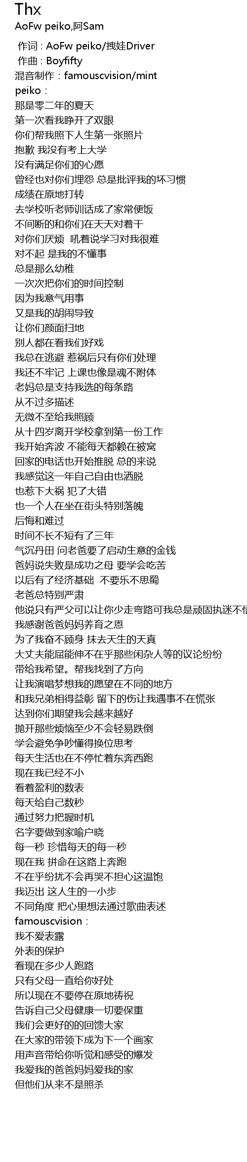 | [01:43.408] | wo gan xie ba ba ma ma yang yu zhi en |