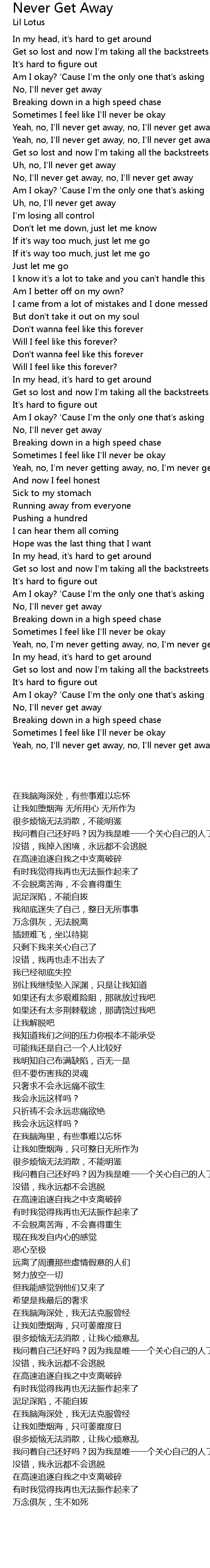 Yeah, no, I'm never getting away, no, I'm never getting away |