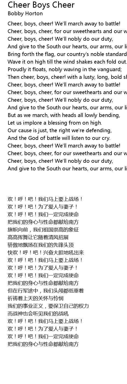 Cheer, boys, cheer! We'll march away to battle! |