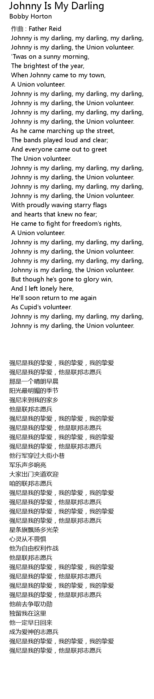| [00:39.008] | Johnny is my darling, my darling, my darling, |
