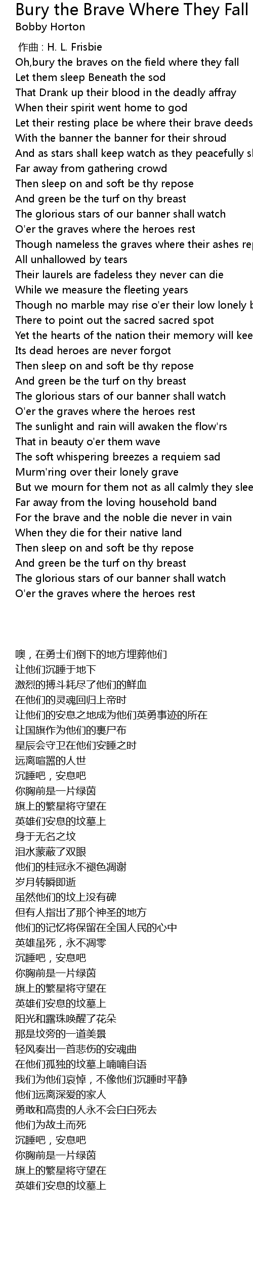| [00:00.000] | zuo qu : H. L. Frisbie |