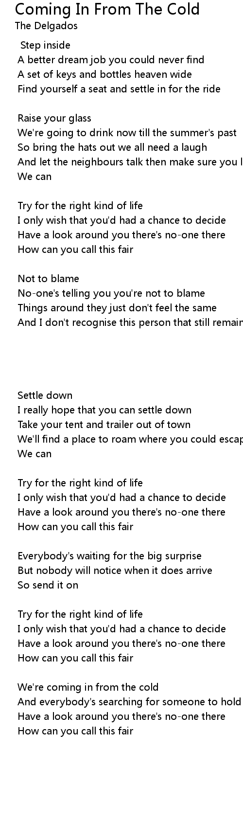 We're coming in from the cold |